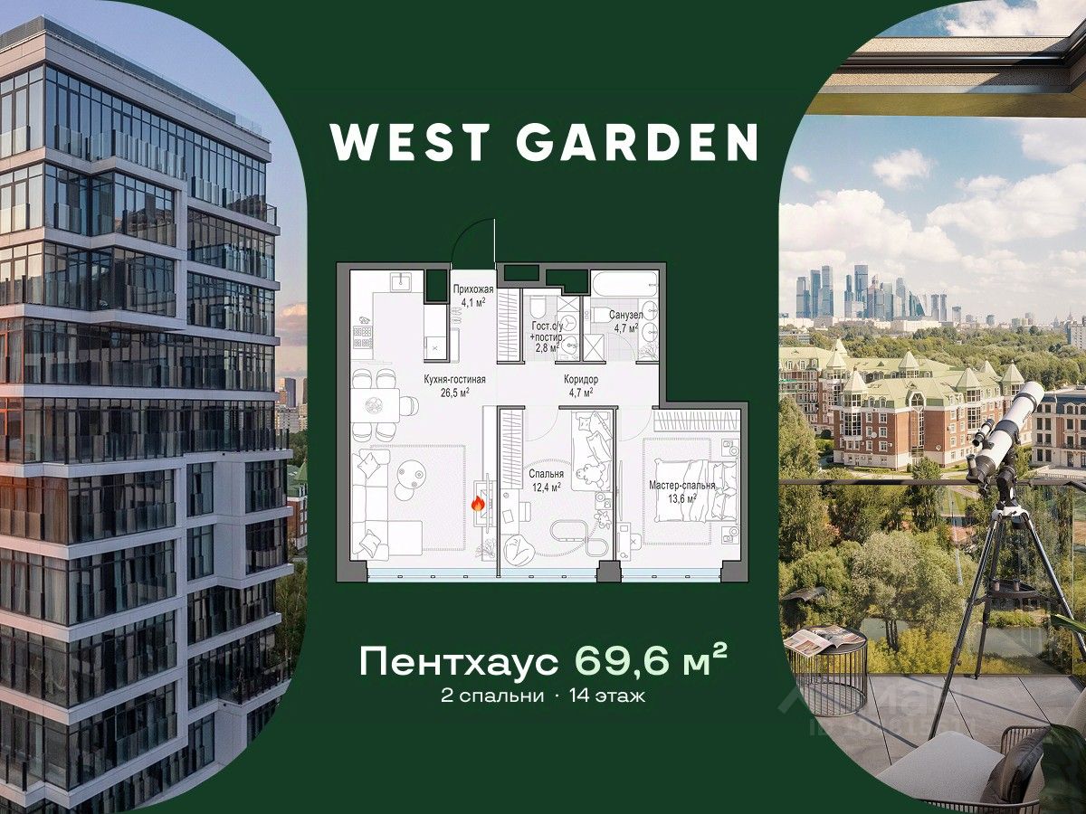 West Garden расположен в зелёном Западном районе Москвы, который вдохновляет на прогулки и занятия спортом на свежем воздухе. Тысяча гектаров парков и зон отдыха в непосредственной близости от квартала открывает безграничные возможности для прогулок и отдыха.