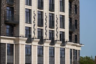 Архитектура проекта - современное прочтение торжественного и изящного стиля ар-деко, который, как и сталинский ампир, сформировался в результате развития идей чикагской школы. В доме 6 секций, 115 вариантов продуманных планировочных решений - от уютных студий до просторных пентхаусов с дровяным камином. В каждой квартире предусмотрен полный комплекс систем комфорта: принудительная центральная вентиляция с фильтрацией воздуха, очистка воды до уровня питьевой, круглогодичное горячее водоснабжение, быстрые бесшумные лифты, которые идут прямо в паркинг, продуманная подготовка под кондиционирование и другие технологические решения.