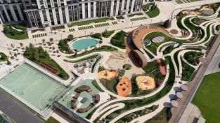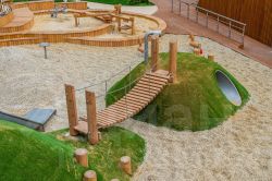 В центральной части парка расположен амфитеатр со сценой для представлений и проведения мероприятий. Для гармоничного развития маленьких жителей - пространства по стандарту Kid`s Lab для гармоничного развития детей всех возрастов: детская площадка, игровая комната, рельефная площадка для общения со сверстниками, где можно заниматься паркуром, танцевать и играть в настольный теннис.