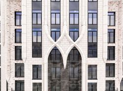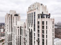 Архитектура проекта - современное прочтение торжественного и изящного стиля ар-деко, который, как и сталинский ампир, сформировался в результате развития идей чикагской школы. В доме 6 секций, 115 вариантов продуманных планировочных решений - от уютных студий до просторных пентхаусов с дровяным камином. В каждой квартире предусмотрен полный комплекс систем комфорта: принудительная центральная вентиляция с фильтрацией воздуха, очистка воды до уровня питьевой, круглогодичное горячее водоснабжение, быстрые бесшумные лифты, которые идут прямо в паркинг, продуманная подготовка под кондиционирование и другие технологические решения.