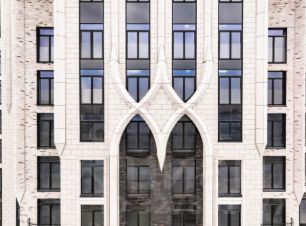 Архитектура проекта - современное прочтение торжественного и изящного стиля ар-деко, который, как и сталинский ампир, сформировался в результате развития идей чикагской школы. В доме 6 секций, 115 вариантов продуманных планировочных решений - от уютных студий до просторных пентхаусов с дровяным камином. В каждой квартире предусмотрен полный комплекс систем комфорта: принудительная центральная вентиляция с фильтрацией воздуха, очистка воды до уровня питьевой, круглогодичное горячее водоснабжение, быстрые бесшумные лифты, которые идут прямо в паркинг, продуманная подготовка под кондиционирование и другие технологические решения.