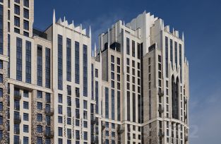 Архитектура проекта - современное прочтение торжественного и изящного стиля ар-деко, который, как и сталинский ампир, сформировался в результате развития идей чикагской школы. В доме 6 секций, 115 вариантов продуманных планировочных решений - от уютных студий до просторных пентхаусов с дровяным камином. В каждой квартире предусмотрен полный комплекс систем комфорта: принудительная центральная вентиляция с фильтрацией воздуха, очистка воды до уровня питьевой, круглогодичное горячее водоснабжение, быстрые бесшумные лифты, которые идут прямо в паркинг, продуманная подготовка под кондиционирование и другие технологические решения.