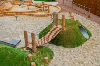 В центральной части парка расположен амфитеатр со сценой для представлений и проведения мероприятий. Для гармоничного развития маленьких жителей - пространства по стандарту Kid`s Lab для гармоничного развития детей всех возрастов: детская площадка, игровая комната, рельефная площадка для общения со сверстниками, где можно заниматься паркуром, танцевать и играть в настольный теннис.