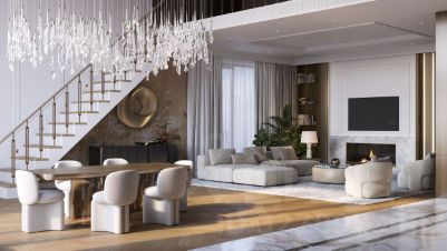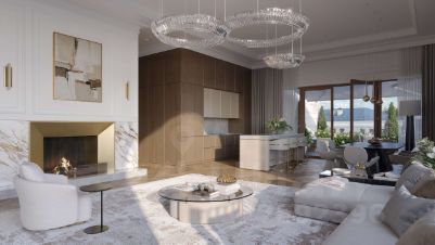 Роскошный двухэтажный пентхаус. Продуманная и изысканная планировка позволяет воплотить самые смелые дизайнерските идеи и создать светлое и объёмное пространство с разнообразными сценариями жизни. Арочные панорамные окна и потрескивание дров в гостиной наполнит зимние вечера теплом и уютом.