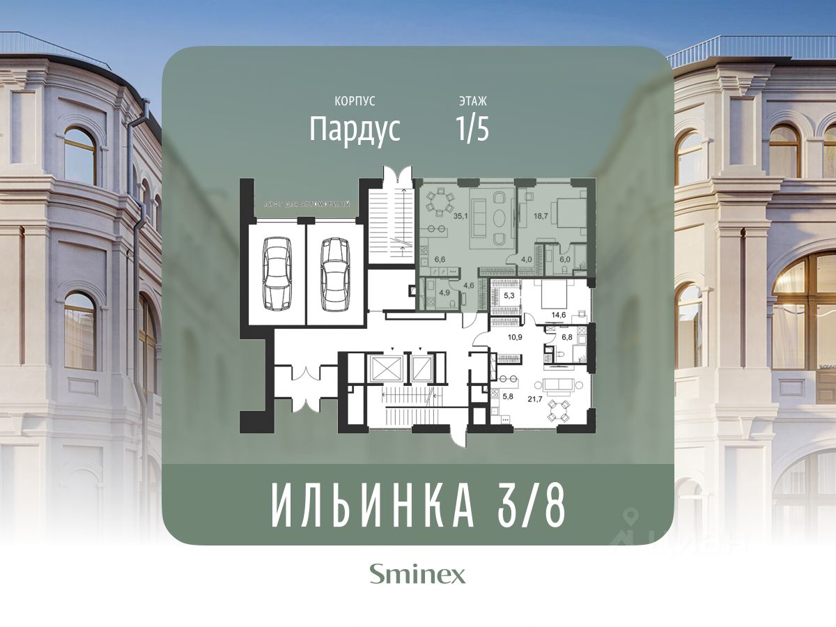 "Ильинка 3/8" - cамая близкая к Кремлю и Красной площади коллекция клубных особняков. Дом расположен на месте Тёплых торговых рядов: 160 м до Красной площади, 300 м до Кремля, 500 м до Администрации Президента. Ранее в этой исторической локации проживали представители царских сословий. По соседству находятся одна из старейших в городе Богоявленская церковь и Биржевая площадь. Расположение дарит жителям комфорт и разнообразие: пересечение Ильинки и тихого Богоявленского переулка с минимальным трафиком автомобилей, близость Никольской улицы с её насыщенной инфраструктурой - от топовых бутиков до ресторанов Michelin. "Ильинка 3/8" - это 7 эксклюзивных и роскошных особняков: 3 деликатно реконструированных исторических и 4 новых. В них представлена инфраструктура только для своих: красивый двор-сад с парадной и торжественной входной группой; лобби-бар для встреч, где можно подождать домочадцев, выпить чашечку кофе или взять её с собой; бесплатный фитнес по стандарту инфраструктуры для здорового образа жизни FIT LAB, общественная гостиная по стандарту FRIENDS LAB для знакомства и совместного времяпрепровождения соседей в доме. В клубных особняках представлены самые полные и лучшие в своём классе системы комфорта. О жителях и доме заботится Служба комфорта Smineх, которая предлагает сервис уровня 5-звёздочных отелей и сохраняет изначальный облик и концепцию дома. Девелопер проекта - Sminex, который специализируется на создании комфортной и престижной среды для жизни и работы.