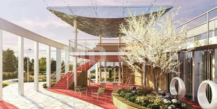 Фасад: Вентилируемый, долговечные декоративные панели, латунные элементы.