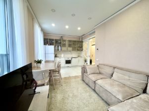 - Просторная кухня-гостиная зонированная на пространство для отдыха с диваном и телевизором и обеденную зону. Кухонный гарнитур оснащен встроенной техникой Electrolux, холодильник Hitachi;