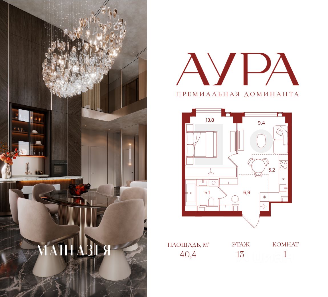 АУРА новая премиальная доминанта Москвы в 10 минутах от Садового кольца. Проект состоит из 42-этажной Бронзовой башни и 41-этажной Серебряной. Рядом набережная Москвы-реки, Даниловский рынок, музеи и галереи, престижные школы и вузы.