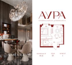 1-комнатная квартира площадью 40.40 м2.