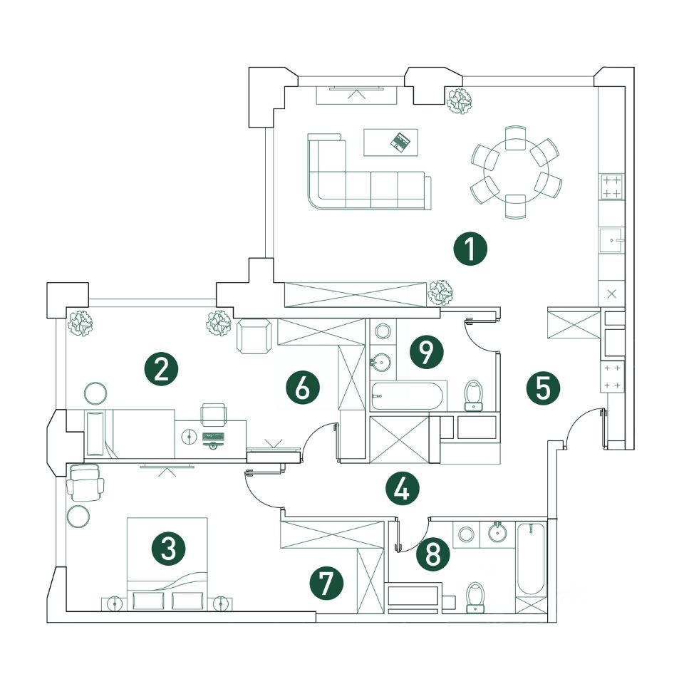Продается 3-к квартира площадью 109.8 кв.м. на 22-м этаже 32 этажного дома в ЖК "ВЭРИ на Ботанической" от ГК ОСНОВА.
