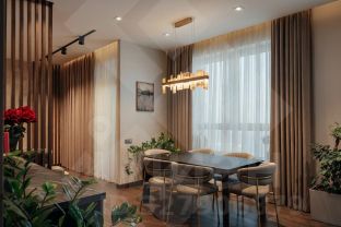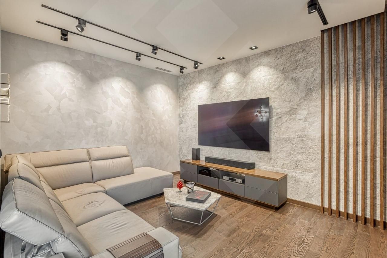 Интерьер выполнен в современном стиле с использованием премиальных европейских материалов. Инженерная доска Coswick, керамогранит Casagrande Padana, авторские обои Fresco, двери Union - это не просто бренды, а уровень, который чувствуется в каждом касании.