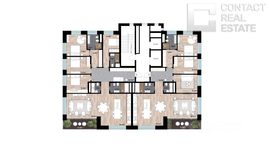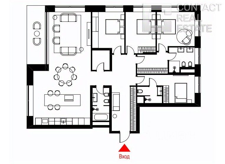 Квартира представлена без отделки, чтобы будущий владелец смог создать собственный дизайн-проект. Пространство позволяет спланировать просторную кухню-гостиную, четыре спальни и несколько санузлов.