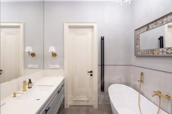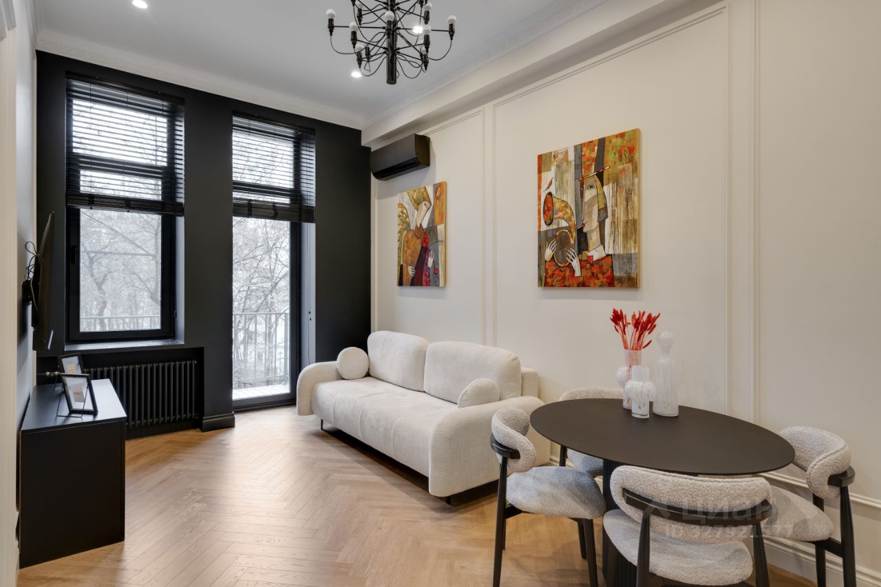 Квартира с функциональной планировкой, имеется гардеробная, совмещенный С/У оборудован ванной и душевой кабиной, 1 изолированная комната площадью 9,7 кв.м., проходная гостиная, площадью 20,6 кв.м. Высота потолков 3,43 м., современная кухня-гостиная с камином. Толстые кирпичные стены, очень теплая квартира с хорошей шумоизоляцией. Квартира с новым дизайнерским ремонтом; цвета, фактуры, стиль, еще долгое время не потеряют своей актуальности.