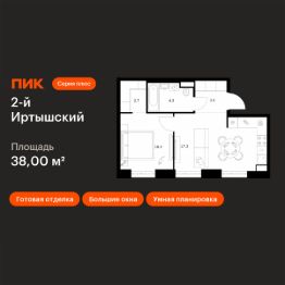 Продаётся 1-комн. квартира площадью 38 кв.м на 11 этаже 43 этажного дома (Корпус 1.1, Секция 1) проекта ПИК 2-й Иртышский. Светлый просторный подъезд на уровне земли, функциональная планировка, большие окна, c отделкой.
