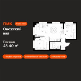 Продаётся 2-комн. квартира площадью 48,4 кв.м на 8 этаже 8 этажного дома (Корпус 1.1.2, Секция 2) проекта ПИК Онежский вал. Светлый просторный подъезд на уровне земли, функциональная планировка, большие окна, c отделкой.
