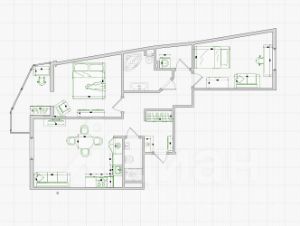 Планировка: кухня-гостиная, две спальни, два санузла, один с ванной, второй с душевой кабиной, кладовая комната, в которой находится постирочный блок.