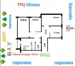 • Общая площадь по ЕГРН 102 м² + лоджия, кухня 10.3 м², жилая 63.8 м², прихожая 14 м², комнаты изолированные.
