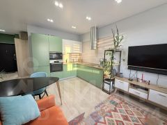 В квартире выполнен дизайнерский ремонт, планировка функциональна и продумана до мелочей. Закрытый двор без машин. Шаговая доступность до метро.