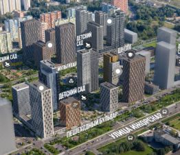 Инфраструктура: 4 детских сада на 750 детей, 2 школы со стадионом, МультиХаб Атлас, Пространство для отдыха и спорта, Пешеходный бульвар, Кафе и магазины на первом этаже.