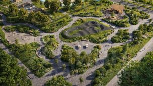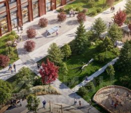 Благоустройство. Двор с ландшафтным дизайном, зонируемым пространством, продуманным озеленением и освещением, маршруты так, чтобы каждый житель мог с удовольствием провести время на прогулке.