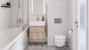 Установлена вся необходимая сантехника: подвесная раковина и унитаз с инсталляцией, белая акриловая ванна с экраном. Смеситель для раковины и ванны в комплекте с лейкой, шлангом и душевой стойкой с плавающими креплениями. Предусмотрен электрический вывод для подключения подсветки зеркала.