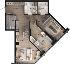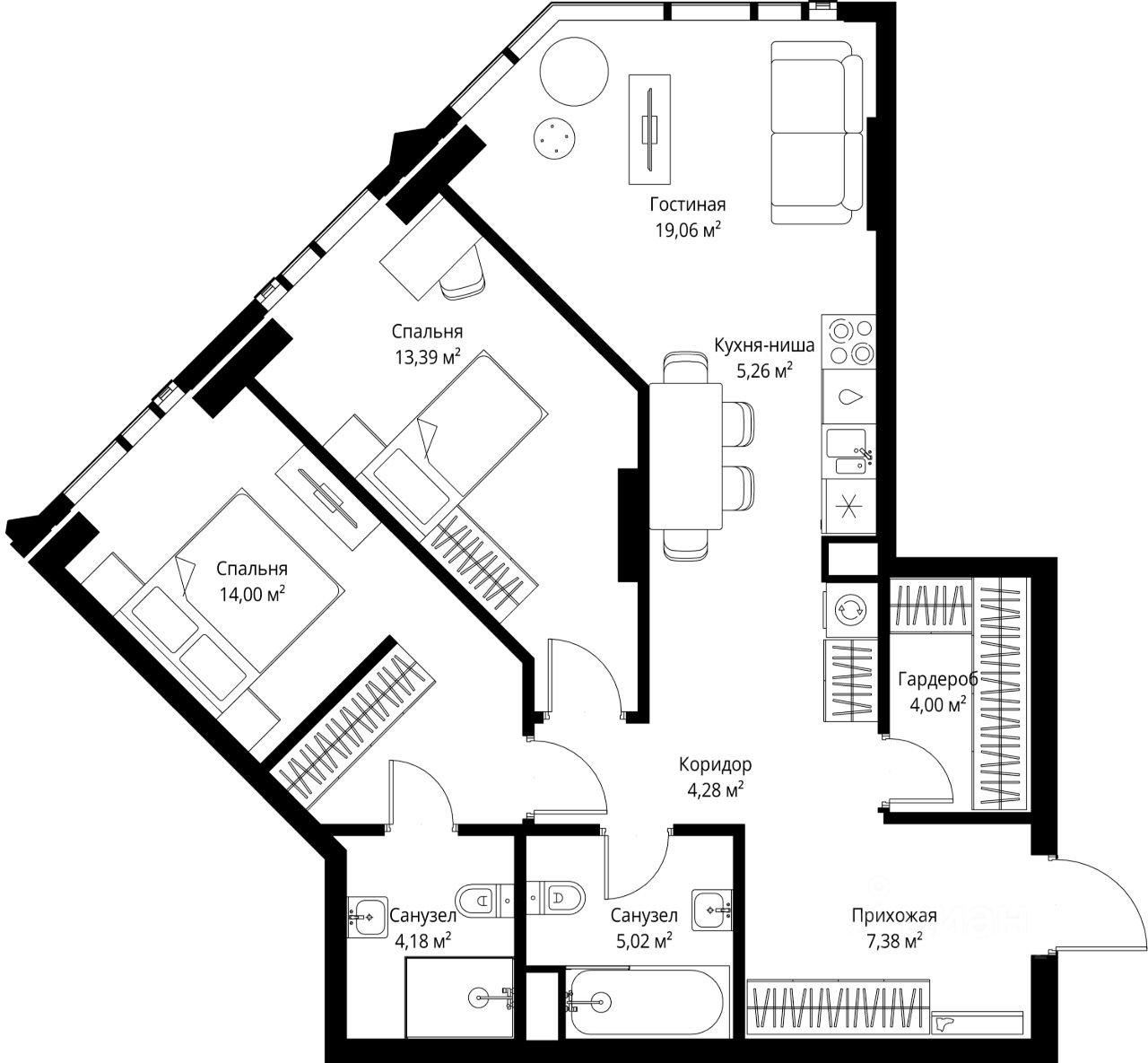 В продаже квартира площадью 76.57 м² без отделки на 23 этаже 46 этажного дома. Квартира расположена в корпусе Лео.