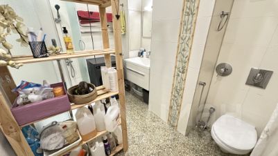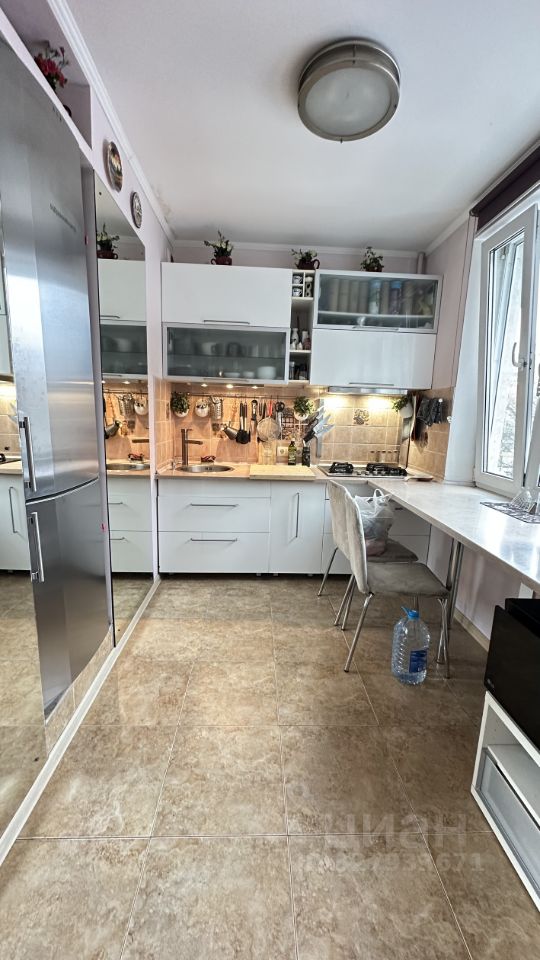 В квартире проложен встроенный пылесос. На кухне из искусственного камня под размеры стен сделаны подоконник (удлинен и объединен со столом на всю стену, что экономит место) и рабочая поверхность кухни. Встроенная кухня ИКЕА. Холодильник, как-бы встроенный, т.е. он как-бы вдавлен на территорию санузла, что удобно и для кухни (не занимает место), и для санузла - разделяет зонально унитаз и умывальник. В комнатах 2х уровневые потолки, дополнительная подсветка точечными светильниками. В большой комнате большой шкаф-купе ИКЕА.