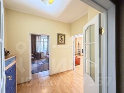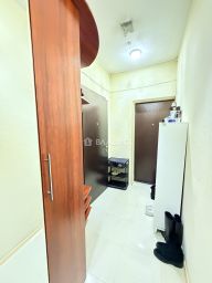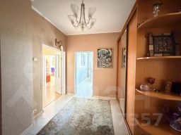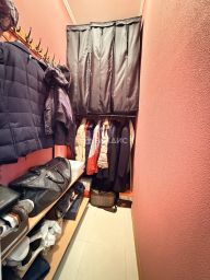 На этаже 4 квартиры. Две из них, включая эту, с дополнительным тамбуром и дверью, где тоже стоит большой шкаф и полки для обуви.