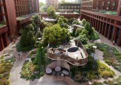 Двор разделен на 4 зоны разных эмоций и действий, которые пересечены и соединены веерными прогулочными маршрутами: