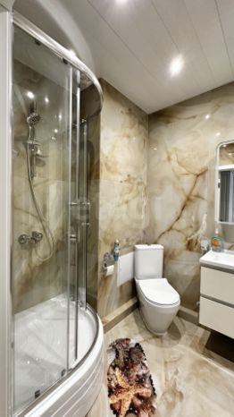 Тёплые полы в коридоре, санузле и в зоне готовки на кухне.
