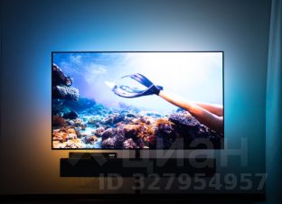 В гостиной - большой OLED-телевизор Philips с акустической системой Bowers & Wilkins и четырехсторонней подсветкой Ambilight