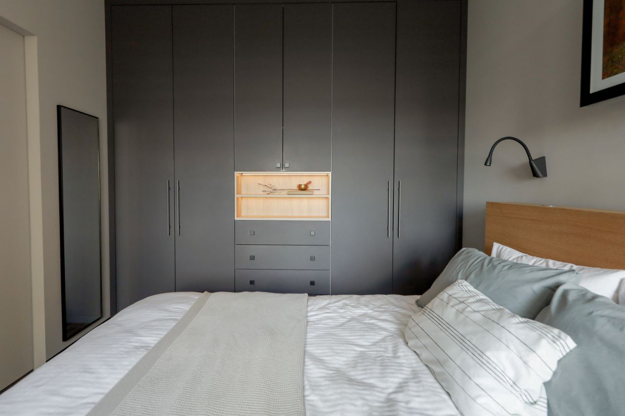 Установлены двери invisible (ProfilDoors). Встроенная мебель на заказ.