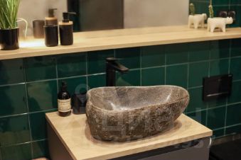 В санузле установлена раковина из камня.
