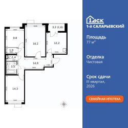Продаётся 3-к квартира номер 389 общей площадью 77.8 кв.м. на 15-м этаже 16 этажного здания. Чистовая отделка. Цена с учётом скидки.