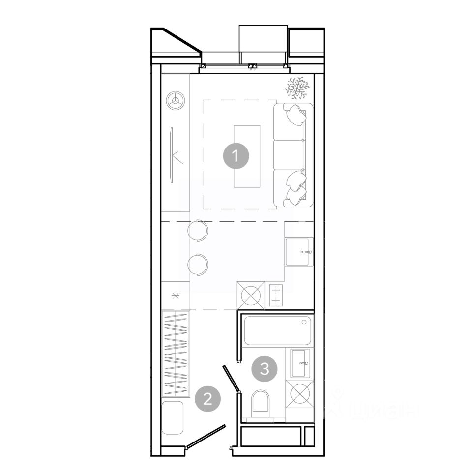 Продается студия площадью 23.7 кв.м. на 9-м этаже