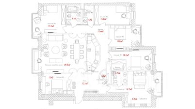 ID 758265 Ко-эксклюзив. Изысканная, предельно функциональная квартира с шестью спальнями площадью 185,7 кв.м расположена на 6 этаже в жилом комплексе Афанасьевский.