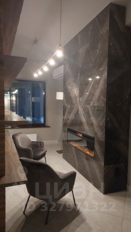 Оригинальное сочетание камня, дерева и современного освещения.