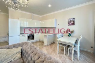 В апартаменте выполнен дизайнерский ремонт с использованием качественных материалов. Апартамент оборудован всей необходимой встроенной бытовой техникой: посудомоечная и стиральная машины, варочная панель, духовой шкаф, вытяжка, холодильник. Установлены кондиционеры. Много мест для хранения.