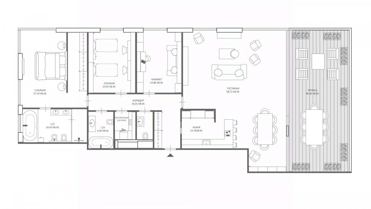 Пентхаус площадью 160,3 м², здесь каждая деталь является произведением искусства.