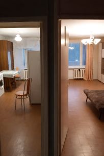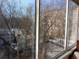 Планировка удобная: просторная комната, из которой есть выход на застеклённую лоджию. Окна и балкон выходят в тихий, зелёный двор, где приятно отдыхать в тёплое время года и не слышно шума дороги. Кухня довольно просторная, можно в ней жить. В ней есть газовая плита, холодильник, стиральная машина. Санузел совмещённый. Справа от входной двери есть кладовка.