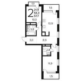 Продаётся 2-комнатная квартира в строящемся доме (Корпус 6/4), срок сдачи: IV-кв. 2026, общей площадью 57.7 кв.м., на 13 этаже. Микрорайон Заречный расположен в природном окружении рядом с лесным массивом в живописной локации — на изгибе реки Десна. Квартал у реки открывает редкую возможность комбинировать городскую жизнь с тишиной и спокойствием природы. В 3 минутах ходьбы открыт парк "Андерсен" .