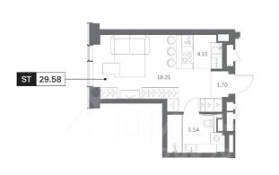 Продаётся студия в ЖК TATE общей площадью 29,99 кв.м на 8-м этаже 49 этажного дома.