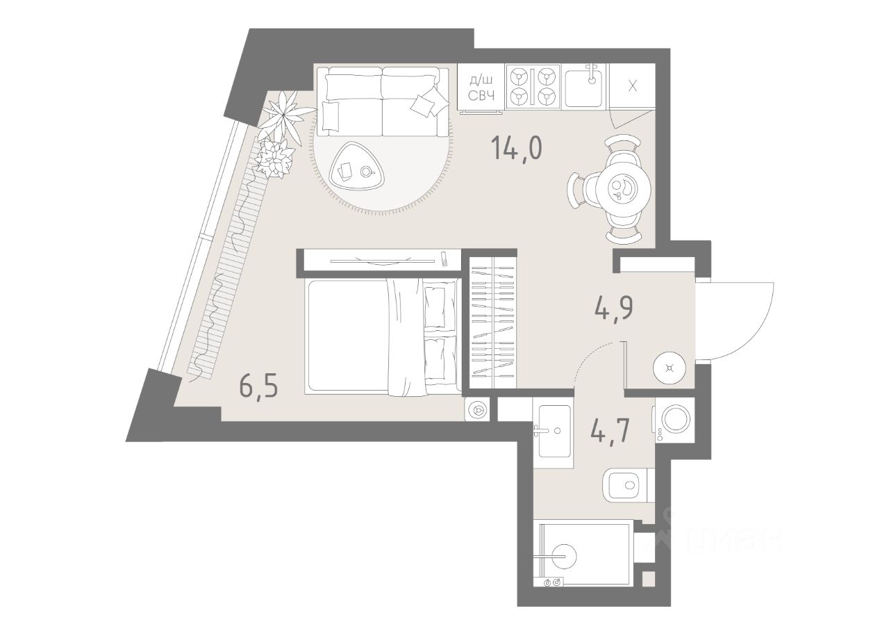 Продуманная европланировка, которую легко зонировать под ваши запросы. Потолки от 3,1 м.