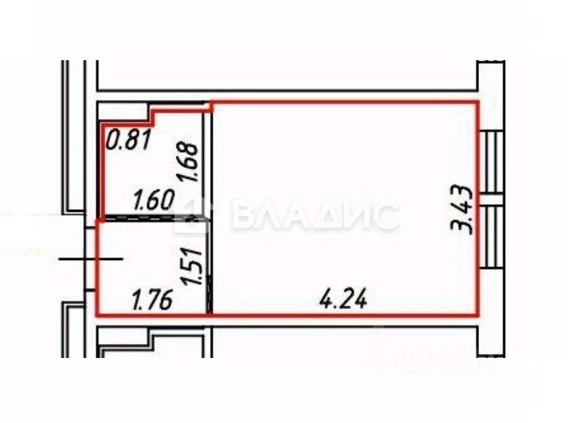 площадь студии - 19.7 м².