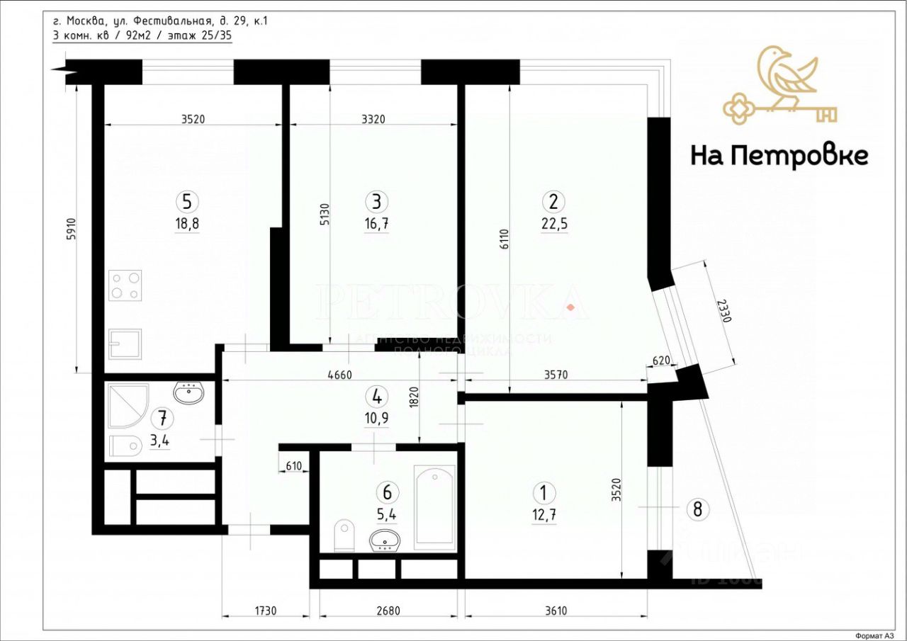 Продается просторная трехкомнатная квартира в современном монолитном доме 2021 года постройки. Общая площадь квартиры составляет 92 кв. м, жилая — 51.9 кв. м, кухня — впечатляющие 18.8 кв. м. Квартира расположена на 25-м этаже 35-этажного дома с панорамным захватывающими урбанистическими и природными видами на город, Речной вокзал и Москва-реку с высоты птичьего полета. Высокие потолки в 3.1 метра создают ощущение простора и легкости. До метро Речной вокзал всего 8 минут пешком, что делает это предложение особенно привлекательным для тех, кто ценит комфорт и мобильность.