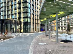 ЖК обнесен шумозащитным экраном. Вход внутрь двора по смарт-картам.