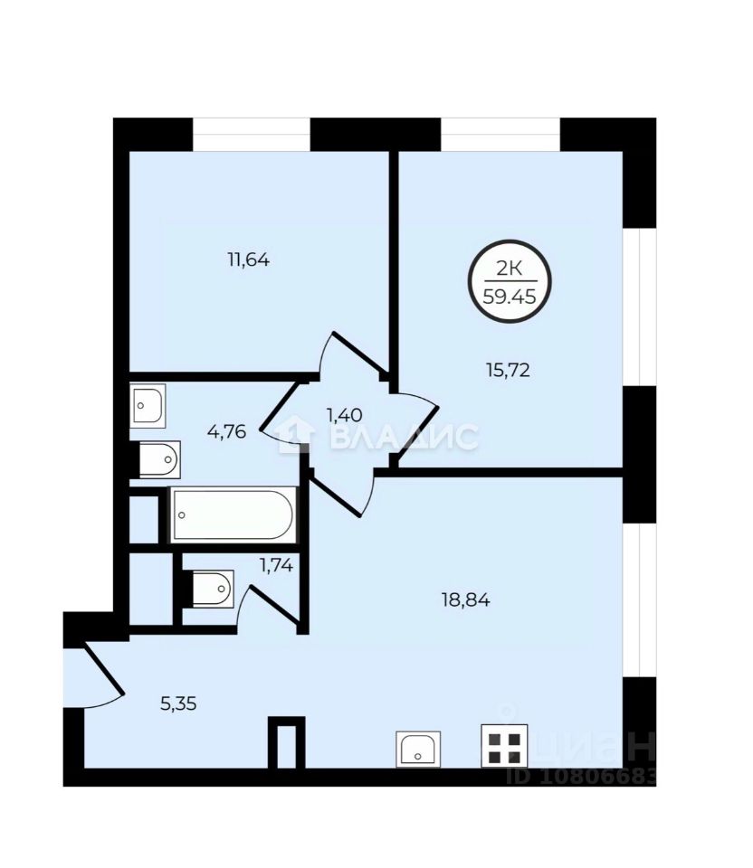2 изолированные спальни (15,7 и 11,6 кв.м.),