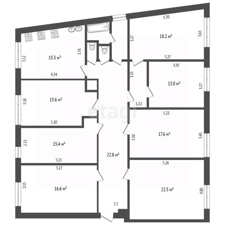 Все межкомнатные стены не являются несущими, предоставляя полную свободу для перепланировки под любые функциональные задачи — от представительского офиса до хостела или многокомнатной резиденции. Окна выходят на две стороны, обеспечивая хорошую инсоляцию и вид на тихие дворы.