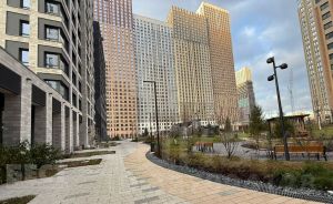 Кафе, пекарни, аптеки, магазины на первых этажах корпусов.
