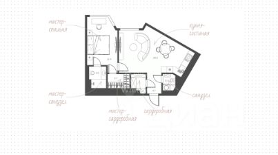 Квартира с 1 спальней общей площадью 49 м² в комплексе бизнес-класса "Архитектор". Квартира с дизайнерской отделкой расположена на 17 этаже в корпусе 1. Планировка включает кухню-гостиную, спальню со своим санузлом и гардеробной, гостевой санузел с постирочной зоной и прихожую с гардеробной. Из окон открываются виды на город.